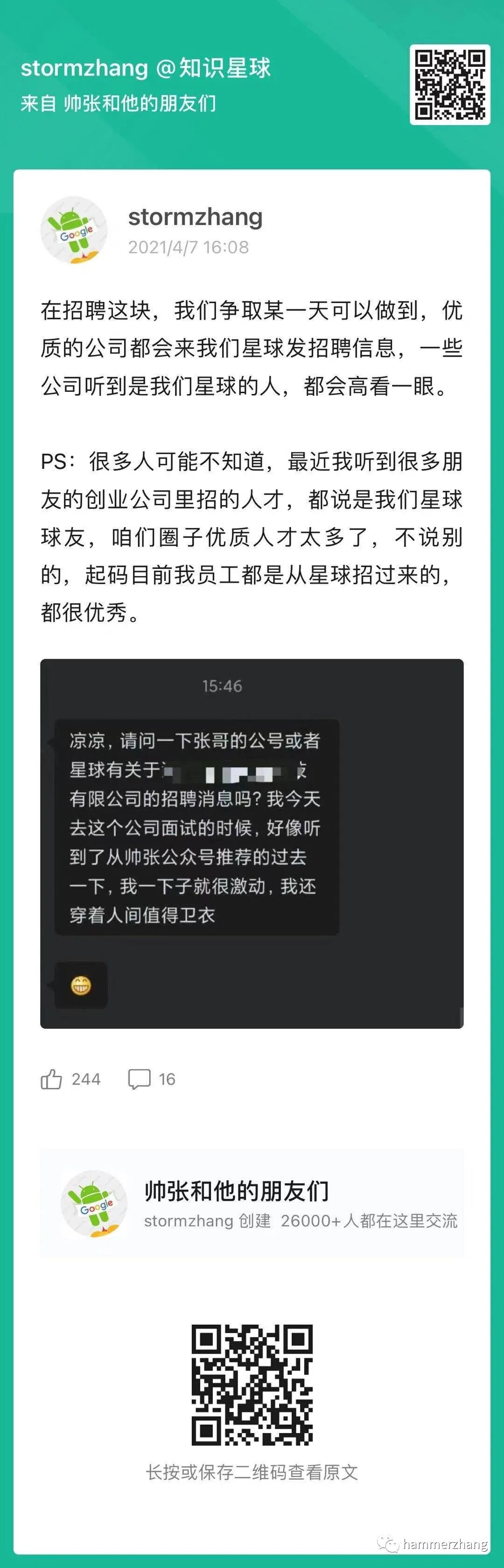 我开始写公众号其实跟张哥有很大关系,翻看17年星球的帖子,那个时候张哥就在建议大家重视写作,开始写作,并且他自己也开始在写作。因为跟张哥同姓,我的公众号取名还模仿了Stormzhang。