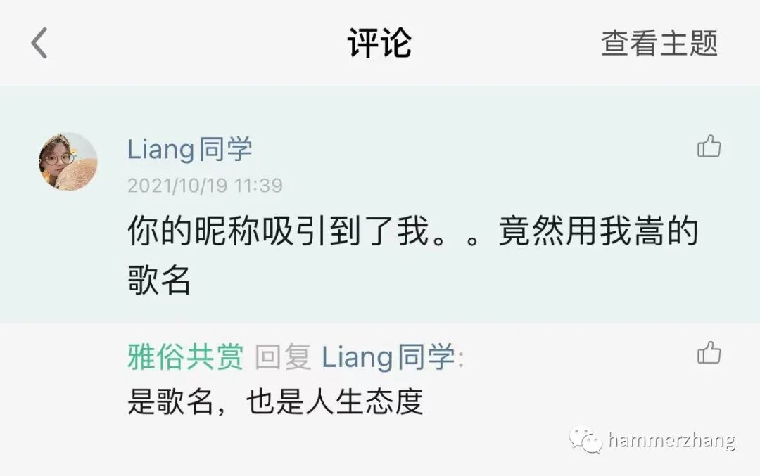 有位朋友说被我的昵称吸引到了,用的是许嵩的歌名,我说,是歌名,也是人生态度。