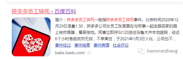 前些天拼多多女员工猝死的消息冲上热搜,年仅23岁,因长期加班,在某一天凌晨一点半下班突发心梗,倒地身亡。
