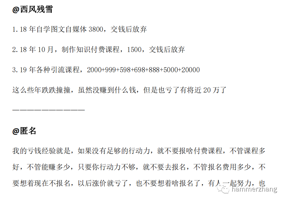 越想赚钱的时候,就是越容易亏钱的时候。虽然说花个几百块报名一个副业项目对自己损失不大,就当刷刷经验,但是时间和精力是无形的成本。