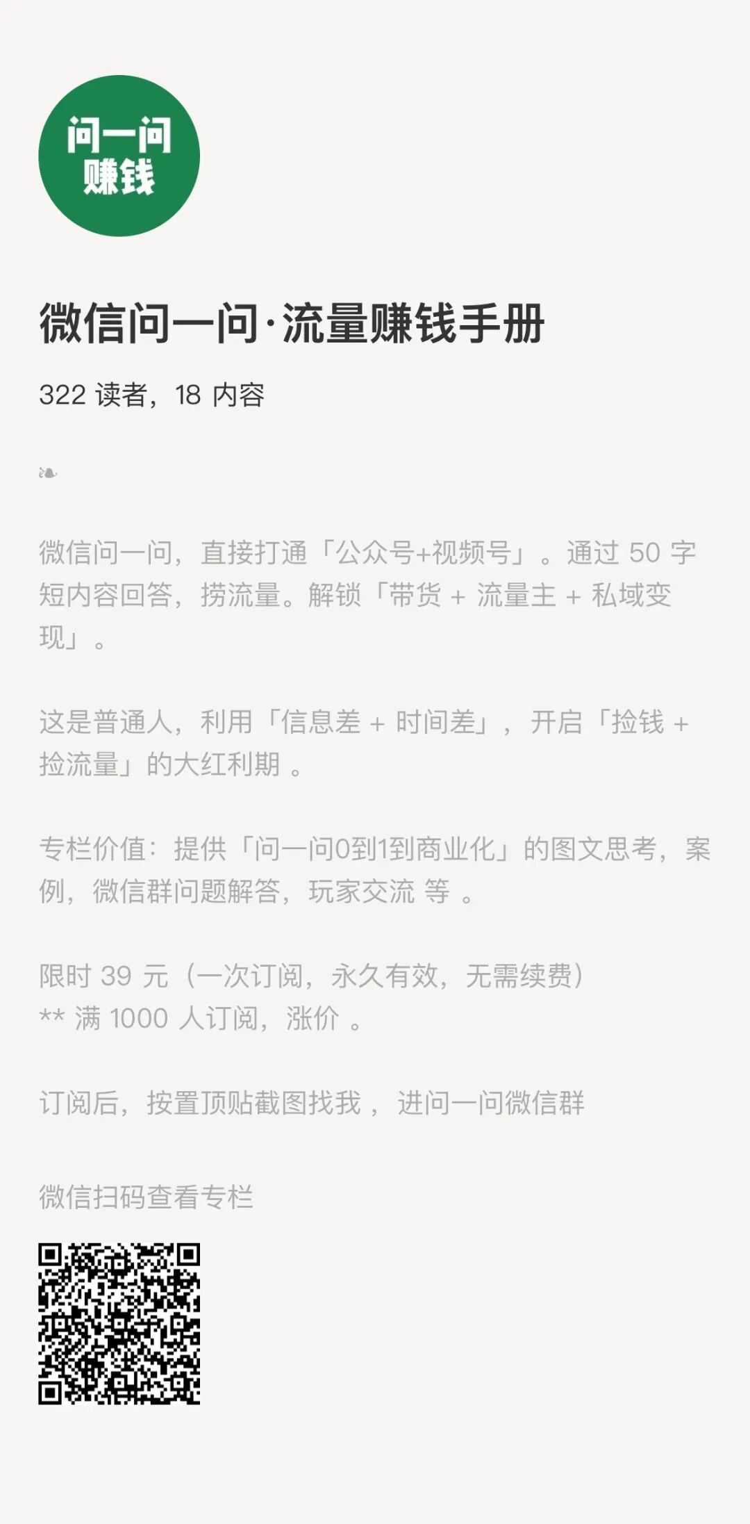 推荐一个不错的副业产品:微信问一问·流量赚钱手册
