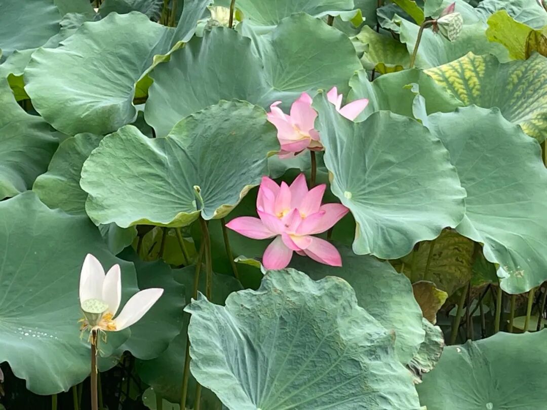 于是,专门找了个早晨去经常散步的公园看看荷花,看看那从淤泥里面长出来的荷花。这也是时隔多年后,再次看荷花,因为之前住的地方附近并没有荷花。