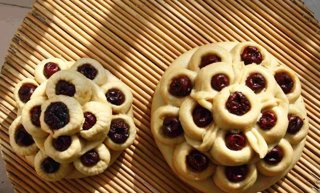 洗干净手,将那饧好的面团,揉揉软软的,用一小块白面搓成长条,两端向内一卷,仿佛如意形状,再点缀两颗红枣,经过30分钟的蒸,就成了登高的枣糕年馍。