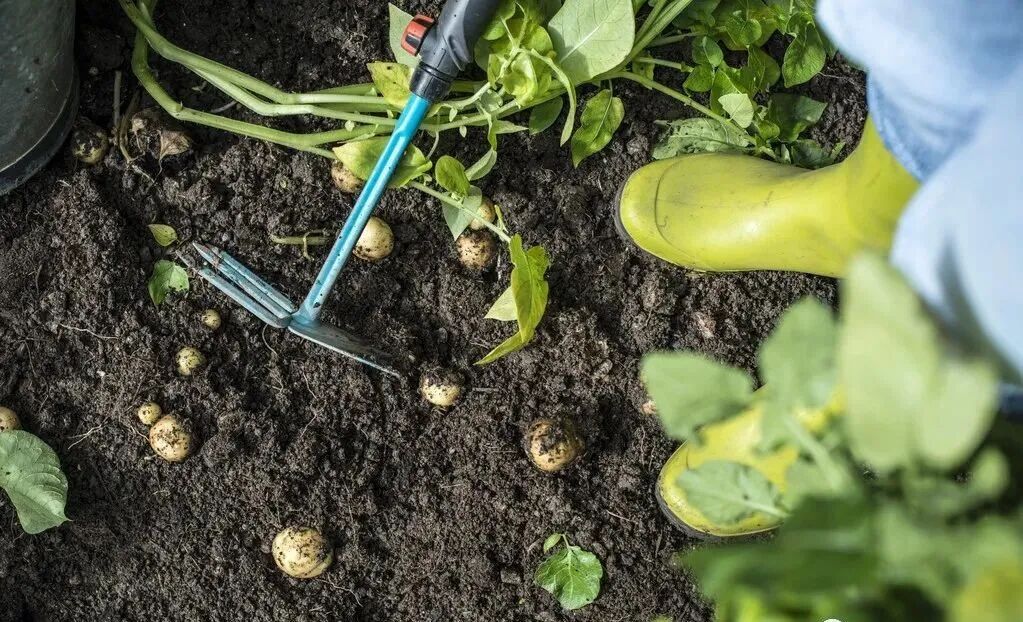 土豆叶片大部分由绿变黄,并逐渐枯萎时,也就是块薯与泥土完全脱落时要及时收获。