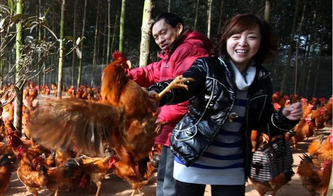 在大学老师极力推荐下他购买了“罗漫粉”土鸡成活率很高,抵抗性很强,产蛋率多,口感好,深受市场需求,能让消费者喜食的土鸡品种。