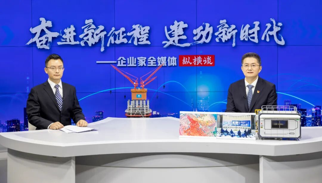 中建三局党委副书记、总经理李琦(右)做客湖北日报企业家全媒体纵横谈。(湖北日报全媒记者 柯皓 摄)