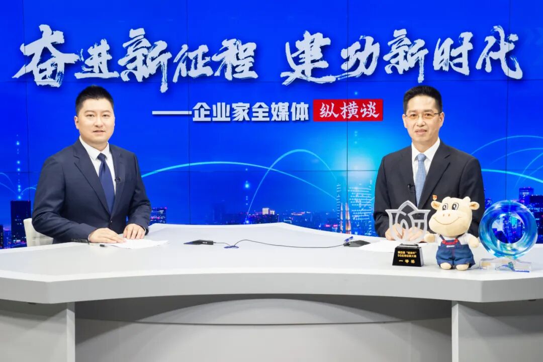 5月7日,武汉钢铁有限公司党委书记、执行董事吴小弟(右)做客湖北日报企业家全媒体纵横谈。(湖北日报全媒记者 何宇欣 摄)