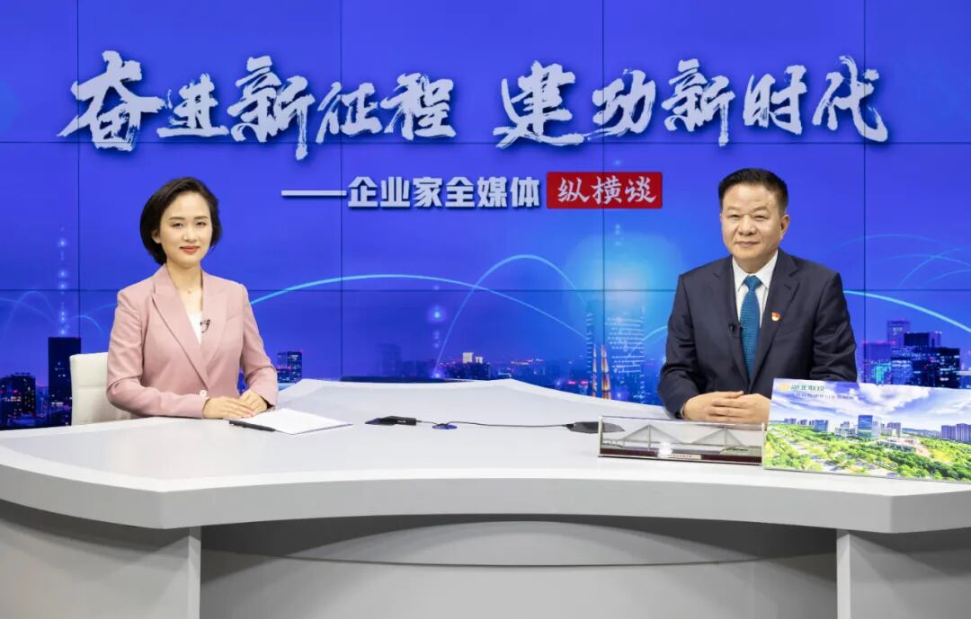 湖北联投集团党委书记、董事长刘俊刚(右)做客湖北日报企业家全媒体纵横谈。(湖北日报全媒记者 柯皓 摄)