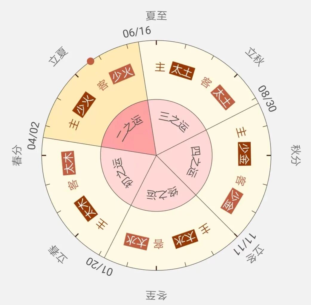 (2)每年的第三个客气或者说第三步客气,始终都与司天相同。每年的第六个客气或者说终之客气,始终都与在泉相同。