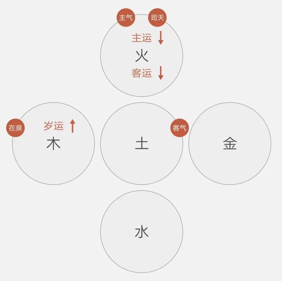 例如:今年(2022年)为壬寅年,地支为寅,寅申之年少阳相火司天,因此今年是少阳相火司天,厥阴风木在泉。