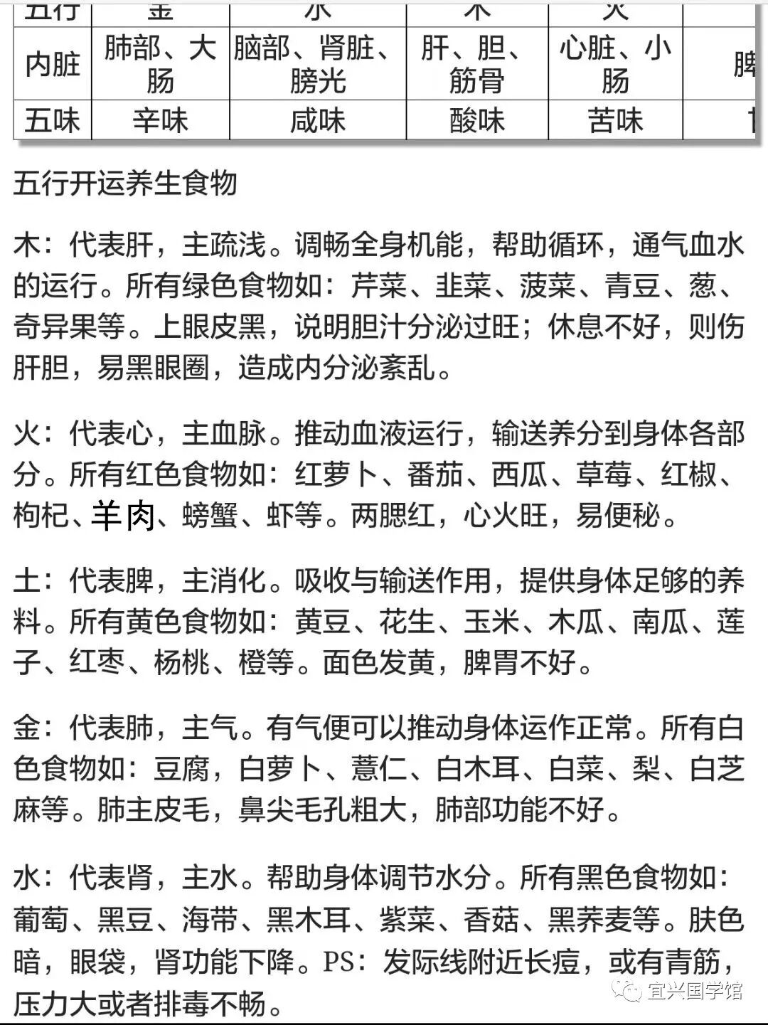 部分食物五行属性如下(有些不准确):