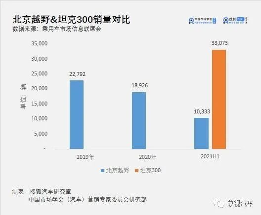 主力车型越野“老炮”BJ40,更是被“后来者”长城坦克300碾压。坦克300上市首月就拿下6018辆的亮眼成绩,之后气势如虹,今年6月,其销量再创新高达到7160台,同期BJ40只有1768辆,不到前者的四分之一。数据显示,上半年几乎在每一个城市,坦克300的销量均超过BJ40。今年1-6月份,坦克300累计销量高达3.31万辆,BJ40则只有9166辆,不到前者的三分之一。无论是销量,还是市场关注度,坦克300都完全掩盖了BJ40。