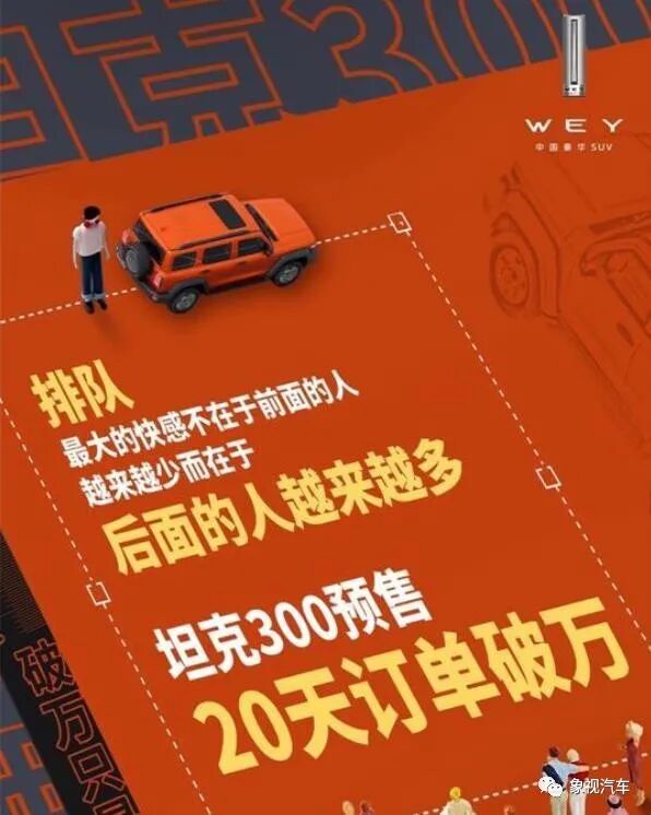 长城汽车魏建军,十年前放弃轿车押注SUV,堪称一场豪赌,最后大赢。后来魏建军堵上自己的姓名,成立高端汽车品牌WEY。而今新车坦克300出手不凡,20天订单量就破万,赌神魏建军第二次豪赌,再次大获全胜。