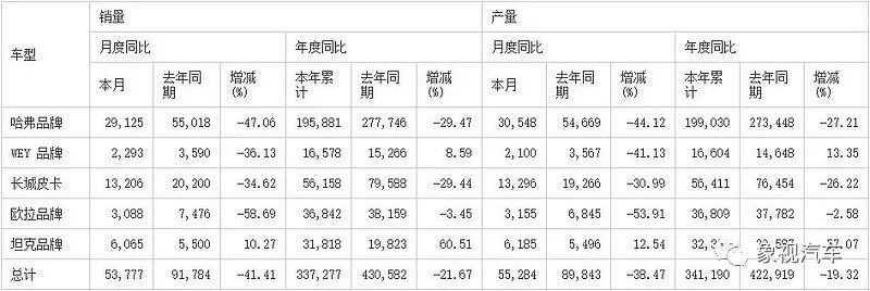 然而谁能想到,凯歌高奏的长城,进入虎年遭遇重大危机。首先,销量断崖式下跌。产销快报显示,长城4月份总销量为5.4万辆,同比大跌41.4%,环比下滑46.7%。1-4月累计批发33.7万辆,同比下降21.7%。