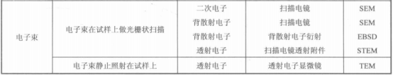 透射电镜和扫描电镜一样,利用聚焦电子束作为照明源,不同的是,透射电镜是以透射电子为成像信号,而扫描电镜是以二次电子、背散射电子等为成像信号(如下图所示)。