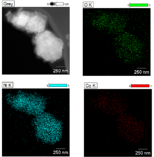 LiNi0.9Co0.1O2的TEM及相应的元素分布(图片来源:孔德飞硕士论文)