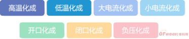 1.高温化成:充放电过程中,电芯始终处于高温环境中,高温可提高电化学反应速率和SEI 膜成型速率。形成的SEI 膜一致性较高但疏松、不稳定。
