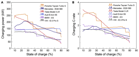充电功率、充电倍率与荷电状态的关系(图片来源:One Earth论文)