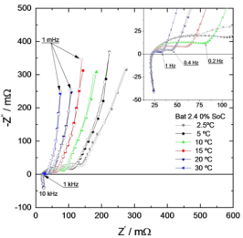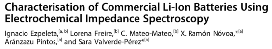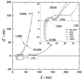 西班牙维戈大学Sara Valverde-Pérez等人利用EIS来表征商业圆柱形锂离子电池在不同充电状态(SOC)条件下和多达300个充/放电循环过程以监测电池的健康状态(SOH)。