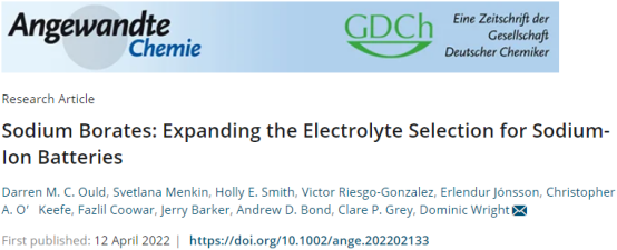 Ould D M C, Menkin S, Smith H E, et al. Sodium Borates: Expanding the Electrolyte Selection for Sodium-Ion Batteries[J]. Angewandte Chemie, 2022.