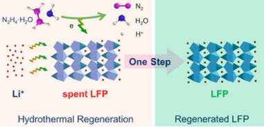对于水热法,使用含锂溶液作为锂源。伴随着水热处理,再锂化通常用于实现再生正极材料的高结晶度和所需的化学计量。研究表明,再生的LFP比未处理的废LFP具有明显更好的放电性能。