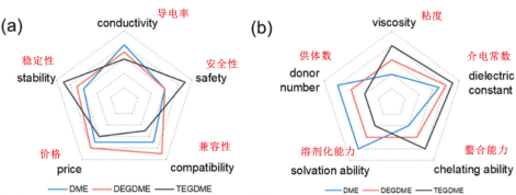 首先我们要系统地研究醚基电解液的基本特征,这些特征与醚基电解液优异的性能及其机理密切相关。