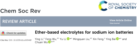 Li Y, Wu F, Li Y, et al. Ether-based electrolytes for sodium ion batteries[J]. Chemical Society Reviews, 2022.
