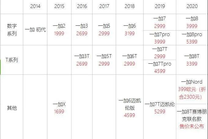 这不难理解,一加的数字系列产品随着旗舰功能的加强,机型成本和售价自然上浮,其中一加8 pro甚至首次突破5000元的售价。相比之下,一加T系列反而有被下放的趋势,性价比更高了,历款产品价格上也没有很大的上浮,一加3T到一加8T几代基本都在3000元前后徘徊。