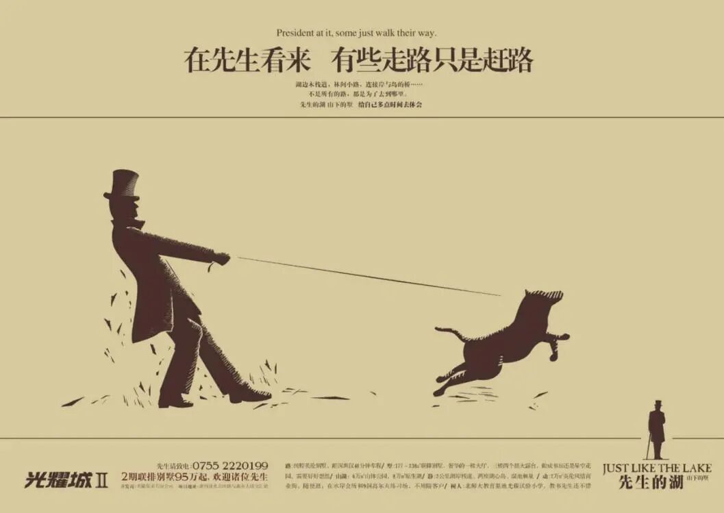 “在先生看来,有些走路只是赶路”等文案,让“先生的湖”一问世,就掀起了巨大的波澜,引起了买房者的共鸣。