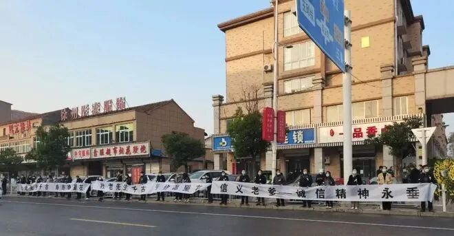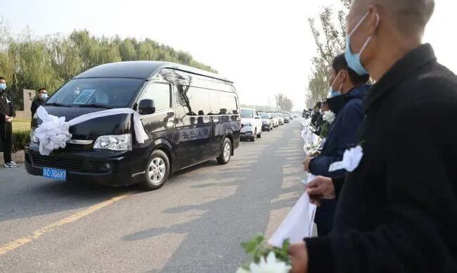 2021年10月23号清晨,在徐州睢宁县一条长长的街道两旁站满了人群。他们拉起挽联,手持白花,目送着一辆黑色灵车缓缓前行。