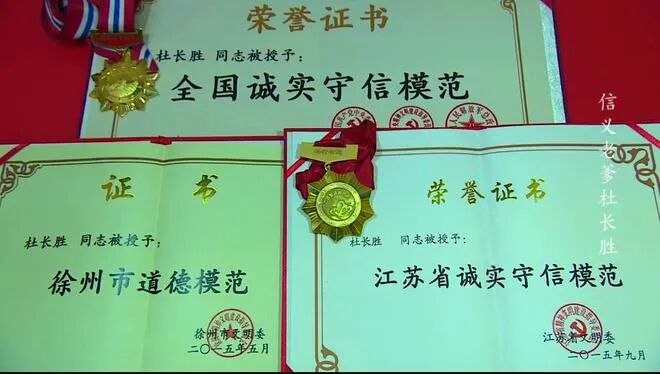 很多荣誉和掌声都接踵而至,杜长胜先后获得了“江苏好人”、“徐州好人”、“中国好人榜”、“第五届全国诚实守信道德模范”等诸多奖项。