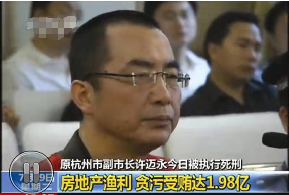 这个人叫许迈永,曾担任杭州市副市长,因涉嫌违法乱纪,多罪并罚,2011年被判处死刑。