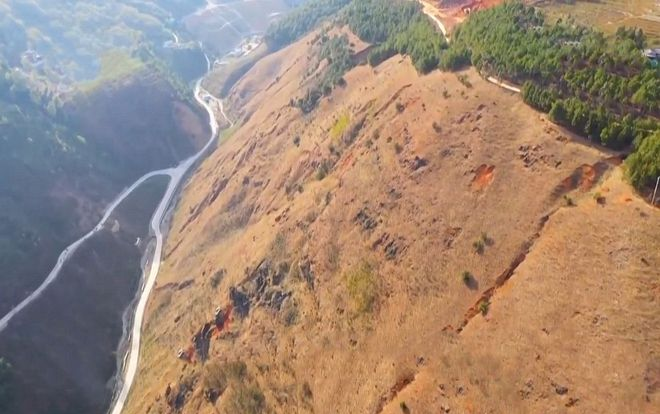 这座荒山,特别陡,寸草不生,一下雨就有泥石流,水土流失特别大。