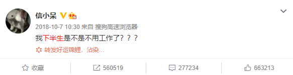 而被这样一份天降馅饼砸中的当事人信小呆一下也懵住了,激动发文:“我下半生是不是不用工作了???”