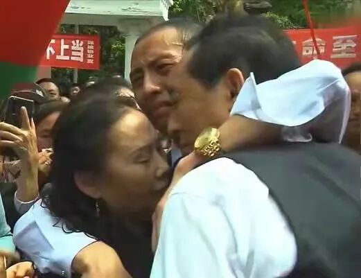 伍先志夫妇弯腰抱住他,三人失声痛哭。这一幕,令所有在场的人无不为之动容。