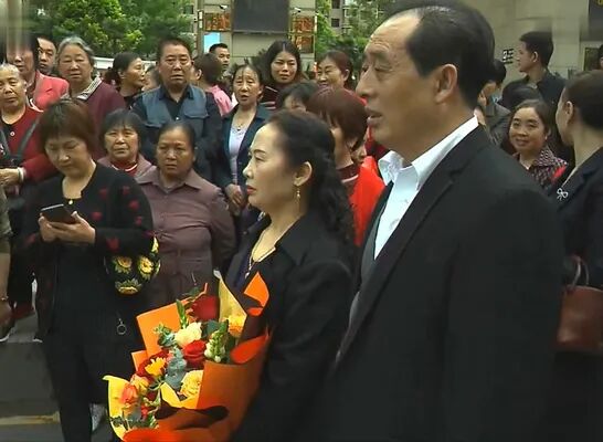 临近中午,一辆小车缓缓停在了小区门口。从车上走下一位穿西装、打领带的男子,在欢迎声中,走向伍先志与吴正惠。