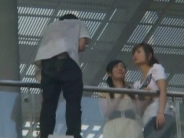 天桥上早已被消防员封锁,看到两个女孩走了过来,急忙把她们拦住。