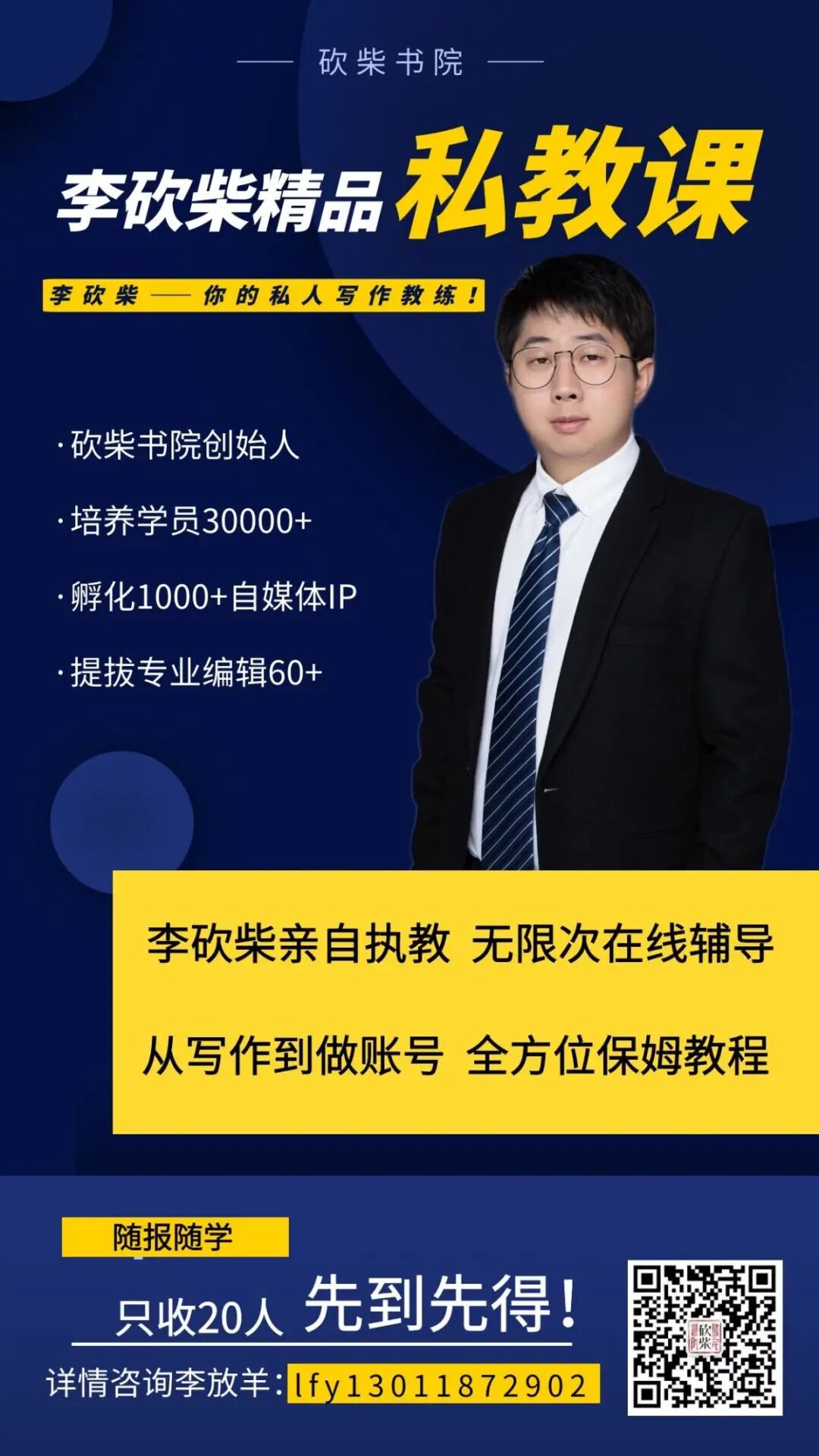 李砍柴老师亲自带队,化身你的私人写作管家,随时解疑答惑,每周一次沟通辅导。