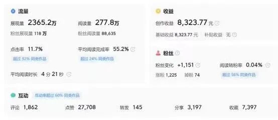 现在,公司已经不用依赖任何代运营项目,书院的内部生态已经成型,我们运营的媒体矩阵在平台上做到了头部的成绩。