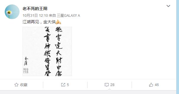 江湖再见,金大侠。一笔挥去过去的恩怨和狂傲。