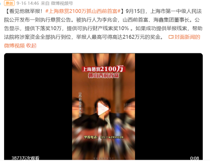 9月15日,上海第一中级法院公布了一则高达2100万的悬赏通告,让李兆会这个听来耳生的男人,成为所有人想要认识的对象。