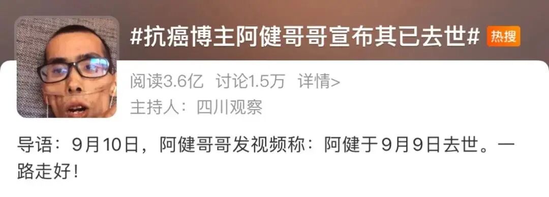 2021年9月10日,“抗癌网红”阿健永远离开了这个世界。