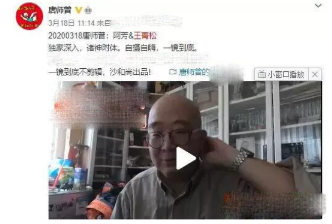 2020年3月,在王青松朋友唐师曾的视频里,我们才得知王青松再次消失在公众视线的原因。
