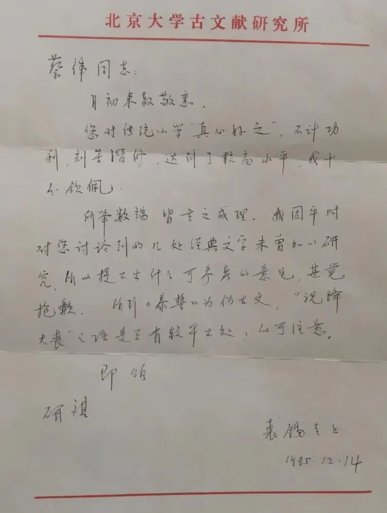1995年,蔡伟斗胆给裘老写了一封信,信中交流了古文字方面的一些观点和看法。哪知裘老很快回信,说:“不计功利,刻苦潜修,十分钦佩。”捧着回信,他像中了六合彩那么高兴。