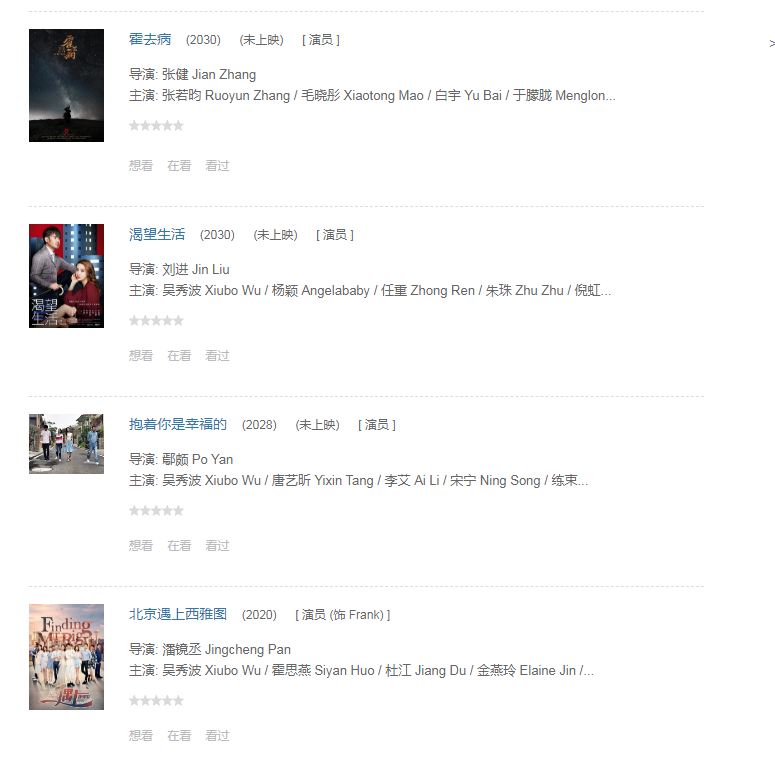 部分他曾出演过的电视剧,也在演员名录中,进行了遮挡处理。