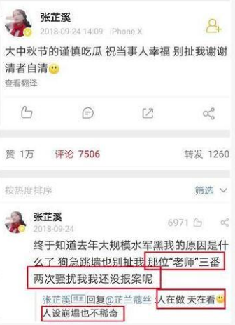 又在评论区里回复“哪位老师三番两次骚扰我我还没报案”,指向不明。
