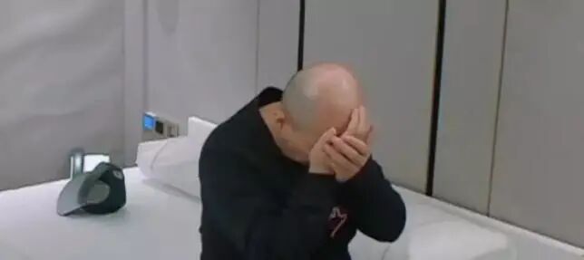 然后,他一个人离开座位,回到了房间,捂住脸,肩膀一抽一抽的,哭得很伤心。