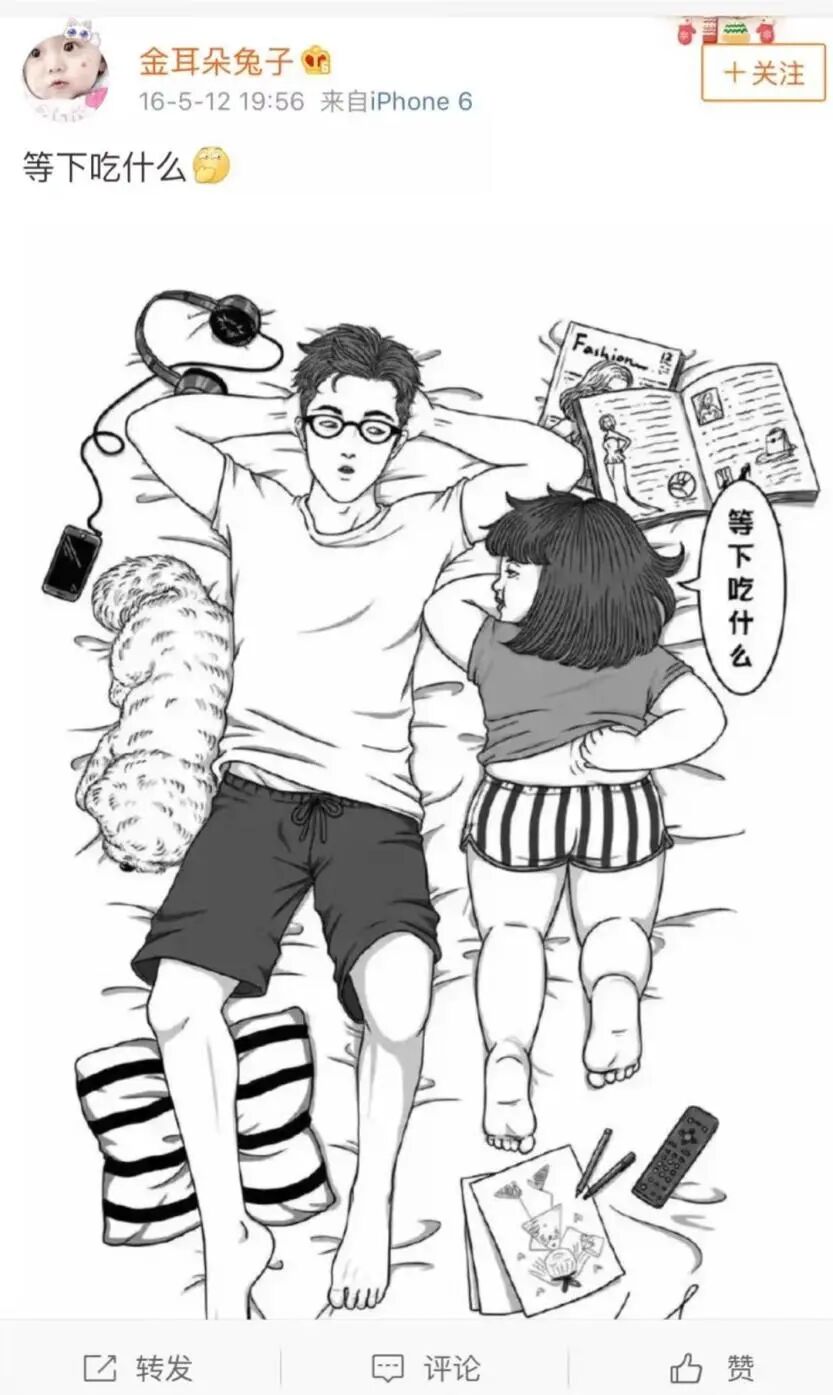 5月12号,马蓉再发一条,“等下吃什么?”,短短5个字,看似随意发问,实则意味深远。配图中的漫画人物,缱绻床笫,而男生,同样戴着眼镜。