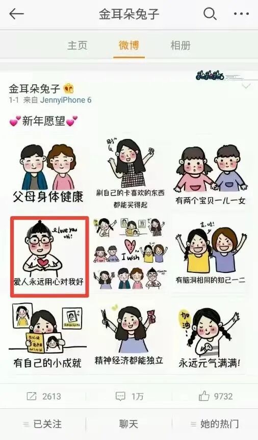 马蓉发了一条新年愿望的微博,其中一项“爱人永远用心对我好”,配图漫画是一个戴眼镜的男生形象。