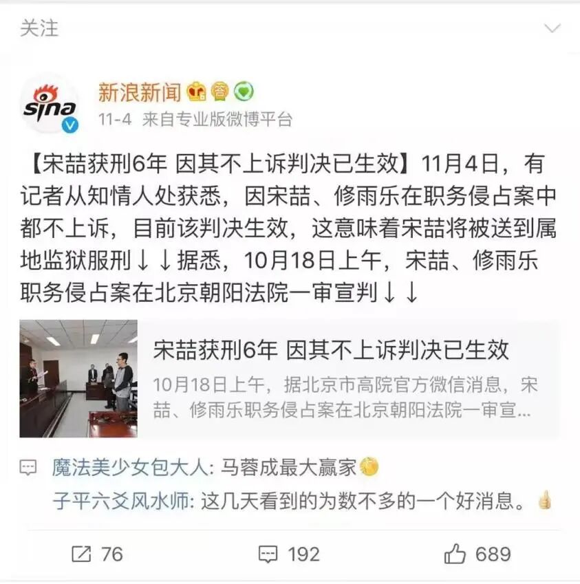 2017年,宋喆被检方以涉嫌职务侵占罪为由批捕。2018年,法院认定马蓉与他人存在婚外不正当关系,从而判决解除与王宝强的婚姻关系。